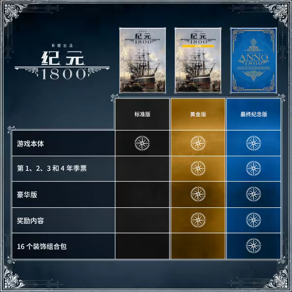 使用最终纪念版,解锁完整的《纪元 1800》游戏体验,该版本内含: